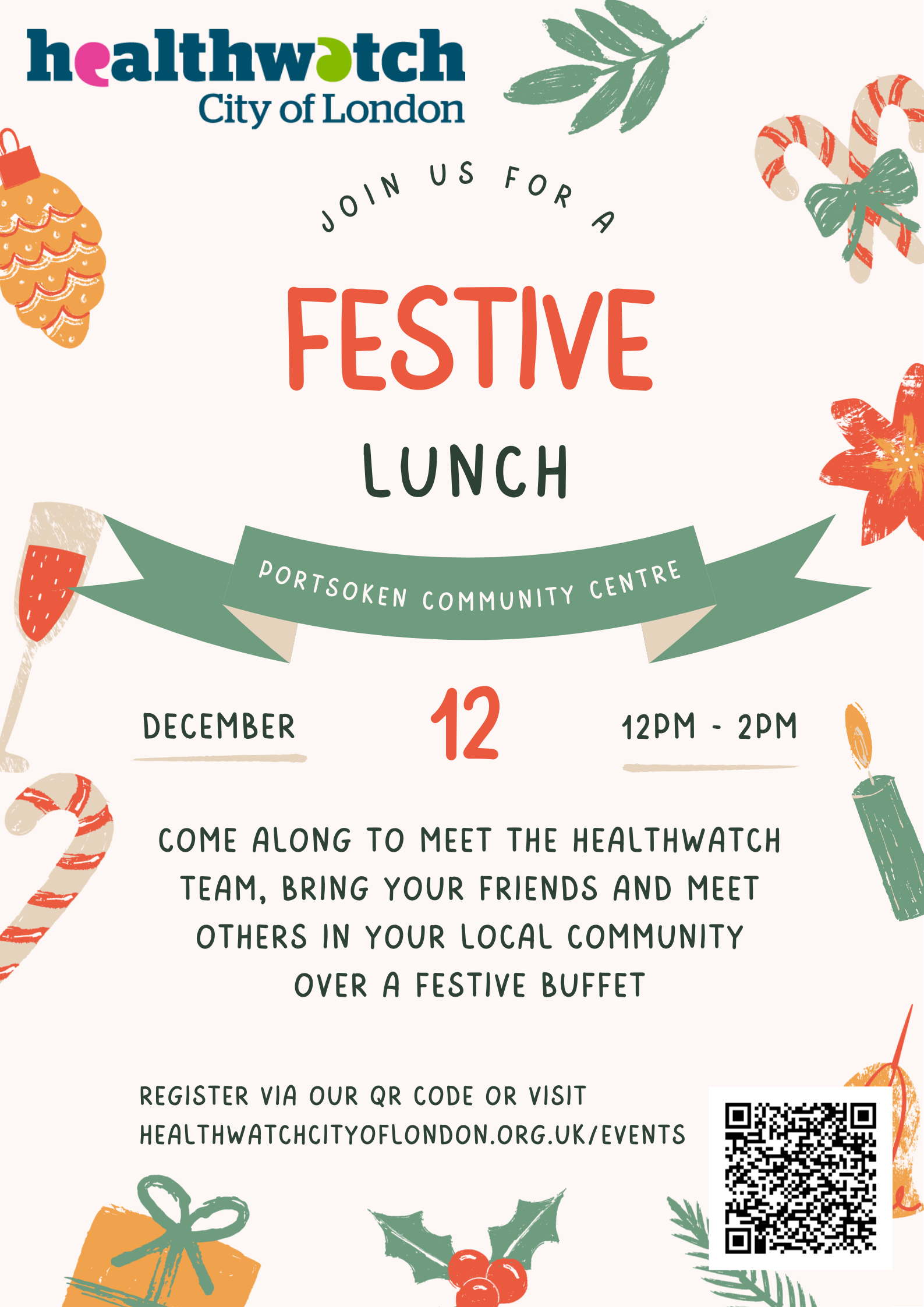 Join us at our buffet Christmas lunch at 12pm on Friday 12th December at the Portsoken Community Centre. It will be a wonderful opportunity to come together, meet your neighbours, celebrate the festive season, and reflect on the year’s work and achievements.